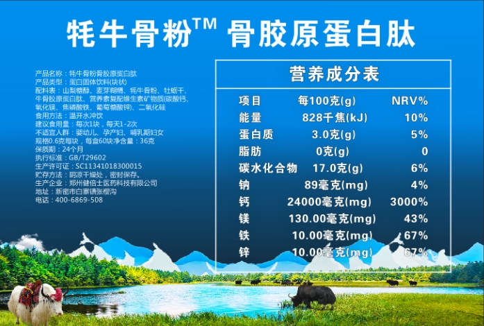 【產(chǎn)品名稱】:牦牛骨粉 膠原蛋白肽 模式