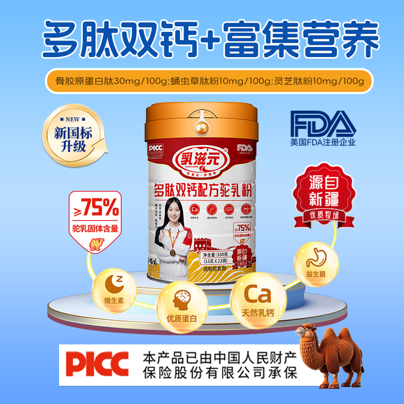 【產(chǎn)品名稱】:乳滋元多肽雙鈣配方駝乳粉