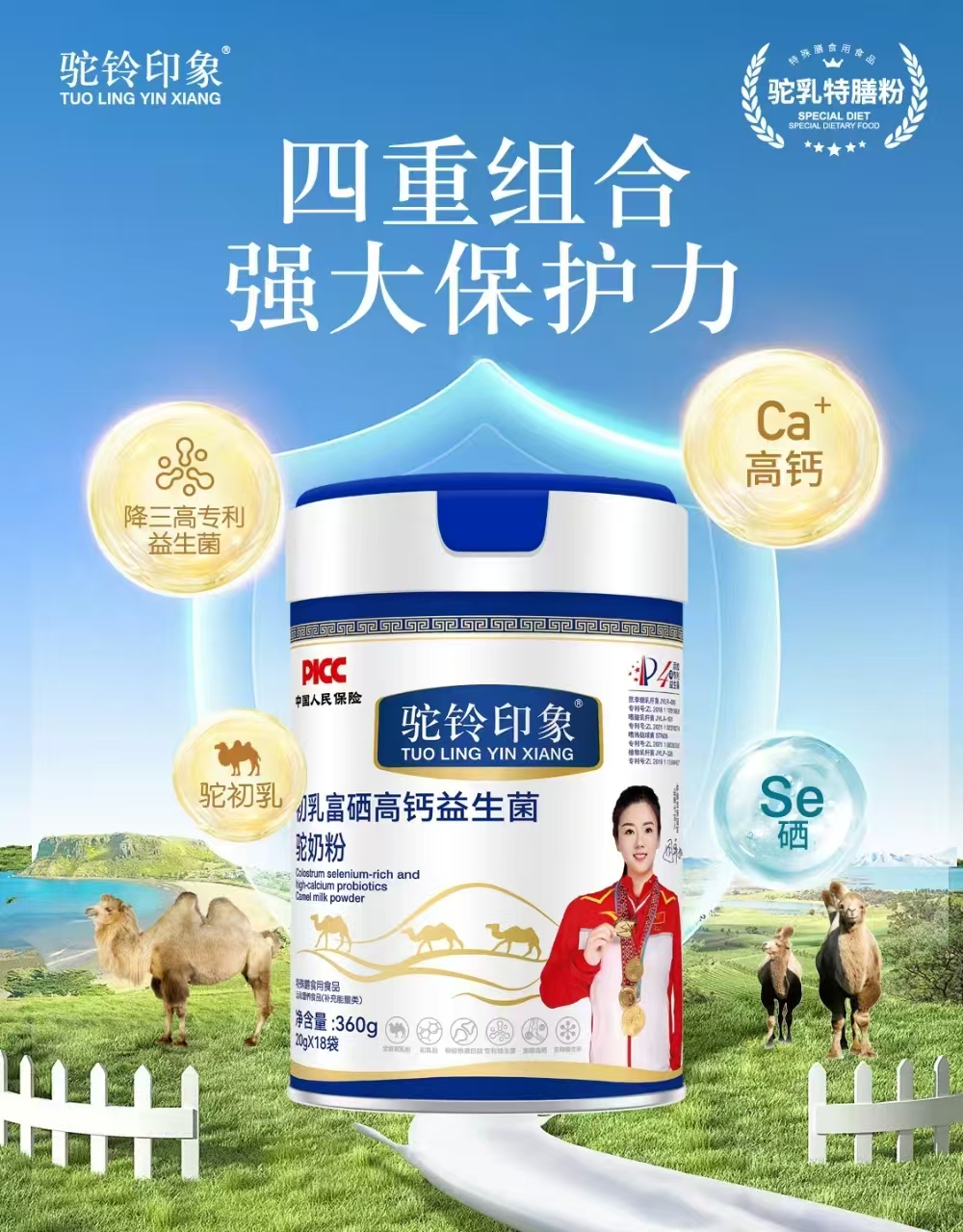 【產(chǎn)品名稱】:駝鈴印象初乳富硒高鈣益生菌駝乳粉