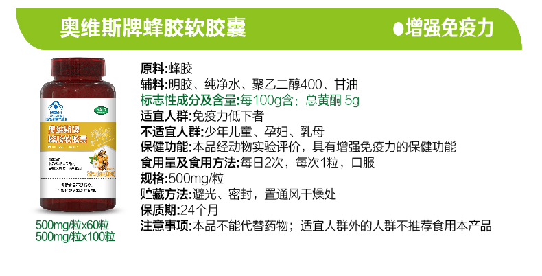 【產(chǎn)品名稱】:奧維斯牌蜂膠軟膠囊