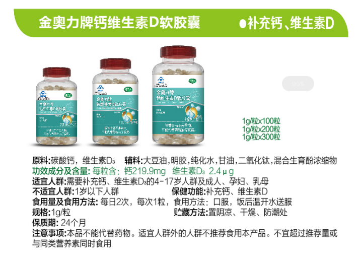 【產(chǎn)品名稱】:金奧力牌維D軟膠囊